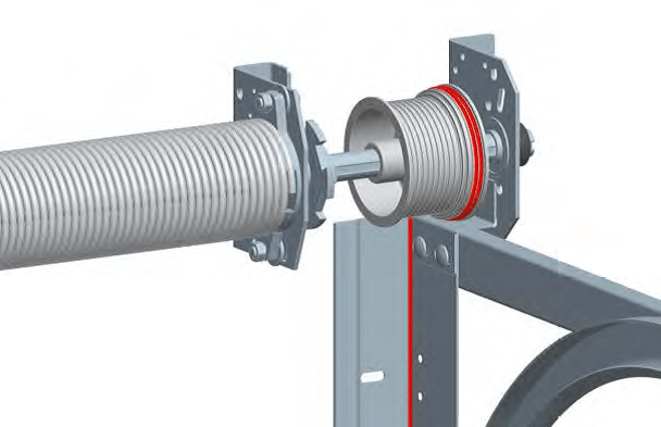 Po osiągnięciu odpowiedniej liczby obrotów rowek w ruchomym zakończeniu sprężyny należy wyrównać z rowkiem na wale, włożyć klin (jeśli jest przewidziany w konstrukcji bramy) i zabezpieczyć dwiema śrubami. Jedna ze śrub powinna znajdować się naprzeciw rowka i albo dociskać klin, albo wchodzić w rowek wału, jeśli klina nie ma. Przy braku rowka śruby muszą być bardzo mocno dokręcone, lekko deformując wał.